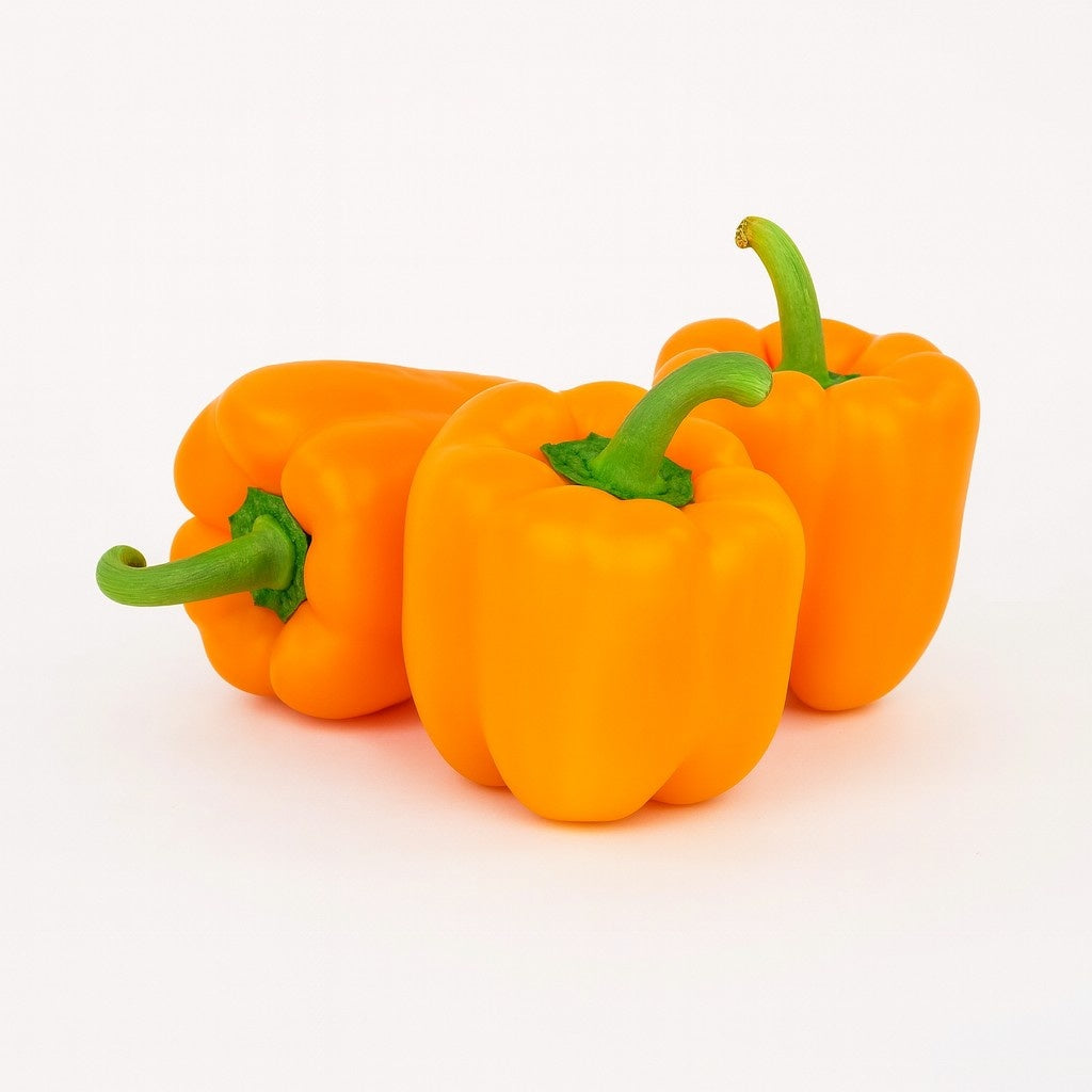 Fresh orange peppers delivered in an 11 lb case, offering vibrant color and crisp texture ideal for culinary use. These peppers provide a rich source of vitamins and antioxidants, perfect for enhancing the flavor and nutritional value of your dishes. Their freshness ensures excellent shelf life and versatility for salads, cooking, and garnishing.